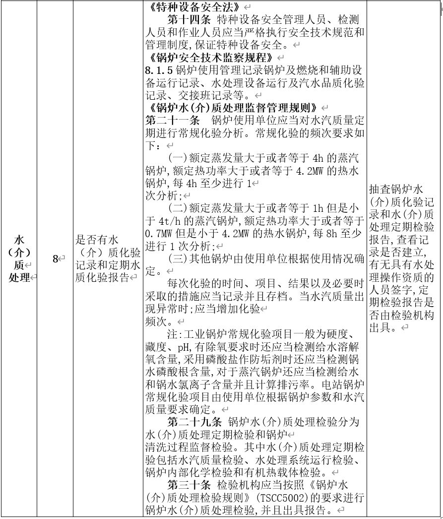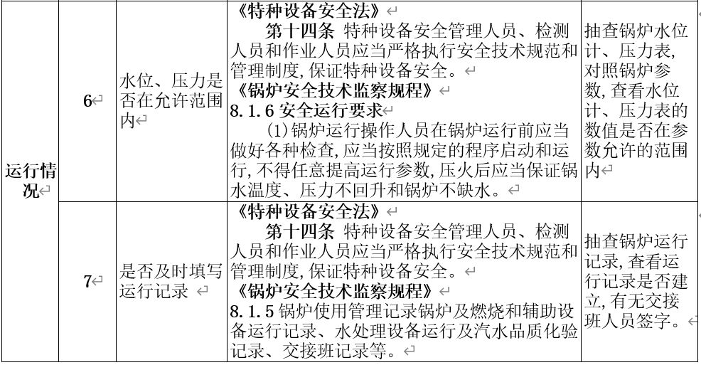 鍋爐,是指利用各種燃料、電或者其他能源,將所盛裝的液體加熱到一定的參數(shù),并通過對(duì)外輸出介質(zhì)的形式提供熱能的設(shè)備,其范圍規(guī)定為設(shè)計(jì)正常水位容積大于或者等于30L,且額定蒸汽壓力大于或者等于0.1MPa(表壓)的承壓蒸汽鍋爐;出口水壓大于或者等于0.1MPa(表壓),且額定功率大于或者等于0.1MW的承壓熱水鍋爐;額定功率大于或者等于0.1MW的有機(jī)熱載體鍋爐。 鍋爐分類 2 鍋爐按照《特種設(shè)備目錄》分類如下: ▲承壓蒸汽鍋爐(臥式) 鍋爐現(xiàn)場(chǎng)安全監(jiān)督檢查 3 鍋爐現(xiàn)場(chǎng)檢查中常見問題示例 4 (一)鍋爐未注冊(cè)登記 (二)未配備持證的鍋爐運(yùn)行操作人員和鍋爐水處理作業(yè)人員,以及特種設(shè)備安全管理員證(具有額定工作壓力大于或者等于2.5MPa鍋爐,使用單位需配備專職的特種設(shè)備安全管理員) (三)無(wú)鍋爐內(nèi)部檢查報(bào)告,無(wú)外部檢查報(bào)告 ▲鍋爐外部檢驗(yàn)報(bào)告和鍋爐內(nèi)部檢驗(yàn)報(bào)告 (四)安全閥超期未檢 (五)壓力表超期未檢 (六)液位計(jì)無(wú)最高最低水位標(biāo)識(shí) (七)鍋爐無(wú)水質(zhì)檢驗(yàn)報(bào)告 (八)無(wú)鍋爐運(yùn)行記錄或鍋爐運(yùn)行記錄填寫不規(guī)范