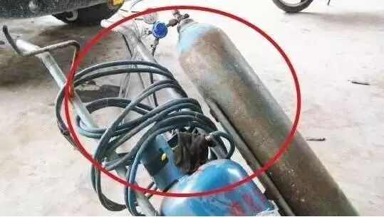 ▲氧氣瓶膠管和液壓罐膠管未區(qū)分,采用同一種膠管,兩瓶之間安全距離不足,可能造成火災(zāi),容器爆炸事故。