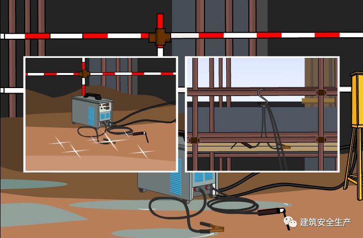 (5)嚴禁利用建筑物的金屬結(jié)構(gòu)、管道、軌道、架子管或其他金屬物體搭接起來形成焊接回路。