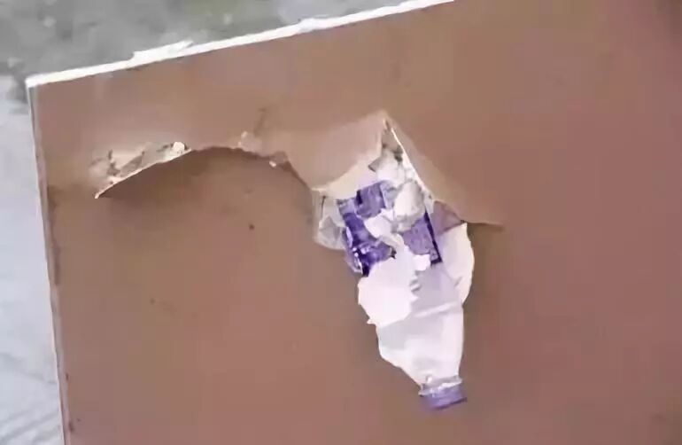 礦泉水瓶嵌在石膏板內(nèi)